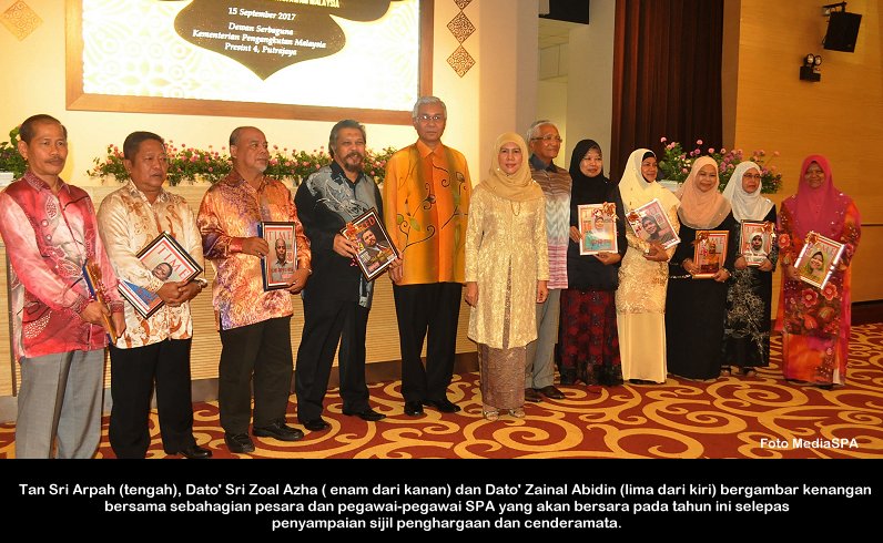 PUTRAJAYA, 15 September ----- ----- Suruhanjaya Perkhidmatan Awam Malaysia telah mengadakan Majlis Sanjungan Budi Lambaian Kasih sempena meraikan warga SPA yang telah dan akan bersara pada tahun 2017. Majlis yang diadakan di Dewan Serbaguna Kementerian Pengangkutan Malaysia Presint 4, Putrajaya dihadiri oleh Pengerusi SPA, YBhg. Tan Sri Arpah Abdul Razak, Timbalan Pengerusi SPA, YBhg. Dato’ Sri Zoal Azha Yusof, Ahli-Ahli Suruhanjaya, Setiausaha SPA, YBhg. Dato’ Zainal Abidin Ahmad, pegawai-pegawai kanan dan warga SPA. Tan Sri Arpah turut menyampaikan sijil penghargaan dan cenderamata kepada pesara dan pegawai-pegawai yang akan bersara wajib pada hujung tahun ini.----- MediaSPA