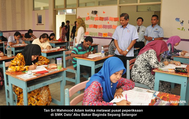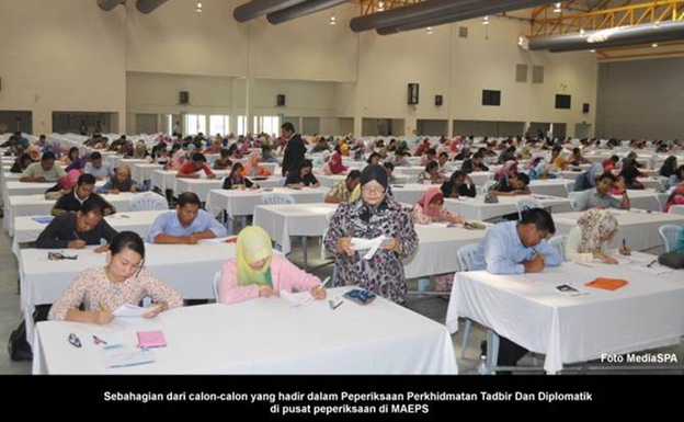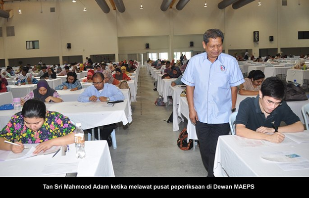 PUTRAJAYA, 14 April ------ Pengerusi S.P.A, YBhg. Tan Sri Mahmood Adam telah melawat beberapa pusat peperiksaan dimana Peperiksaan Memasuki Perkhidmatan Tadbir Dan Diplomatik Gred M41 telah dijalankan oleh Suruhanjaya Perkidmatan Awam diseluruh Negara semalam. Antara puast-pusat peperiksaan yang dilawati termasuklah di Putrajaya International Convention Centre (PICC), Malaysia Agro Exposition Park Serdang (MAEPS), SMK Dato’ Abu Bakar Baginda dan juga di Suruhanjaya Perkhidmatan Awam. Tinjauan dari pusat-pusat peperiksaan mendapati lebih 50 peratus calon-calon hadir untuk menduduki peperiksaan pada kali ini. Peperiksaan ini juga telah dijalankan di beberapa Negara terpilih antaranya Jepun, Washington D.C, Los Angeles, Chicago, Melbourne dan United Kingdom.  ------  MediaSPA
