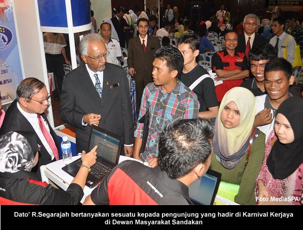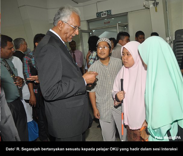 SANDAKAN, 5 Februari ------ Suruhanjaya Perkhidmatan Awam Malaysia (S.P.A) hari ini telah mengadakan Sesi Interaksi bersama Ketua-ketua Jabatan Persekutuan, Badan-badan berkanun dan Persatuan-persatuan badan-badan bukan kerajaan. Sesi Interaksi yang diadakan di Dewan Masyarakat Sandakan telah disampaikan oleh Timbalan Pengerusi S.P.A, YBhg. Dato' R. Segarajah. Turut hadir Timbalan Pengerusi SPA Negeri Sabah, YBhg. Datuk Claudius Roman, Timbalan Setiausaha (Pengambilan) Encik Zainal Abidin Ahmad, Timbalan Setiausaha (Perkhidmatan) Puan Lim Mooi Eia, Setiausaha Bahagian Urus Setia Cawangan Sabah, Encik Musa Sulaiman dan pegawai-pegawai kanan S.P.A. Sidang media juga diadakan selepas sesi Interaksi berakhir. Selain dari itu S.P.A juga telah mengadakan Karnival Kerjaya yang disertai oleh pelbagai Kementerian dan Jabatan. Antara aktiviti yang diadakan adalah pendaftaran online, semakan online dan taklimat kerjaya kepada pelajar-pelajar sekolah menengah disekitar Sandakan. YBhg. Dato' R. Segarajah juga melawat gerai pameran dan menyampaikan cenderamata sebagai tanda penghargaan. ------ MediaSPA