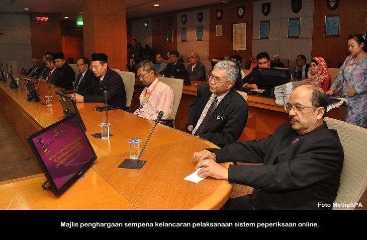 PUTRAJAYA 12 Nov ------  Seramai 313,168 calon telah menduduki peperiksaan secara online untuk memasuki perkhidmatan awam sejak ia diperkenalkan oleh Suruhanjaya Perkhidmatan Awam (S.P.A) pada 30 April 2014. Perkara itu diumumkan oleh Pengerusi S.P.A, Tan Sri Mahmood Adam pada satu majlis penghargaan sempena kelancaran pelaksanaan sistem peperiksaan online di Putrajaya semalam. Peperiksaan yang diadakan dengan kerjasama JARING Communication Sdn. Bhd. dan Syarikat Novatis Resources Sdn.Bhd. yang menyediakan jalur lebar telah membolehkan 120,000 calon menduduki peperiksaan dalam masa yang sama. Menurut Tan Sri Mahmood lagi peperiksaan terkini iaitu Peperiksaan Pegawai Tadbir Dan Diplomatik (PTD) yang dijalankan pada 1 November 2014 telah dijalankan dengan jayanya dengan tidak menghadapi sebarang masalah tenikal dan dihadiri seramai 46,516 calon. ------ MediaSPA
