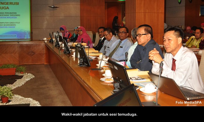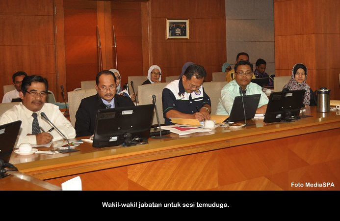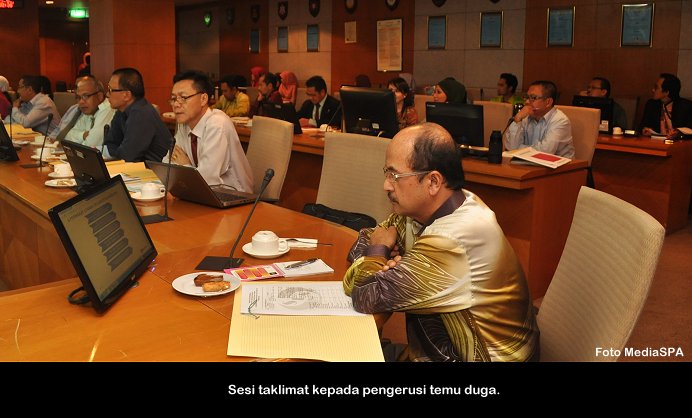 PUTRAJAYA, 23 Okt------ Pengerusi S.P.A Tan Sri Mahmood Adam hari ini berkata, panel temu duga serta wakil jabatan mestilah menjalankan sesi temu duga calon-calon mengikut kaedah yang telah ditetapkan oleh Suruhanjaya Perkhidmatan Awam. “Ikutlah garis panduan yang telah ditetapkan oleh S.P.A, apabila menjalankan sesi temu duga”. Katanya lagi “temu duga dengan menggunakan kaedah Competency Base Interview (CBI) adalah cara terbaik untuk menguji seseorang calon”. Beliau berkata demikian pada sesi taklimat kepada pengerusi-pengerusi temu duga untuk jawatan Latihan Separa Perubatan Bertaraf Diploma dan Juruteknik Komputer Gred FT17, di Putrajaya petang tadi. Menurutnya lagi S.P.A tidak mahu nanti dipersalahkan apabila panel temu duga melantik calon yang bermasalah.”Rujuklah kepada S.P.A dahulu apabila menghadapi sebarang masalah”. Sesi temu duga bagi Latihan Separa Perubatan akan bermula pada 27 Oktober 2014 hingga 7 November 2014. ------MediaSPA