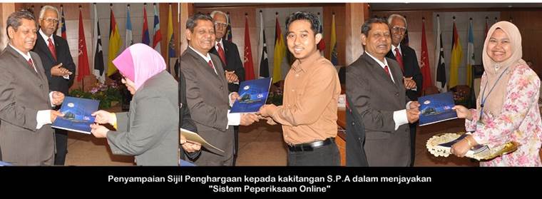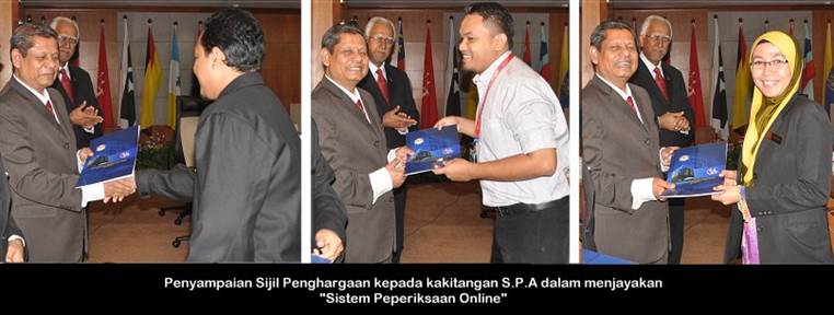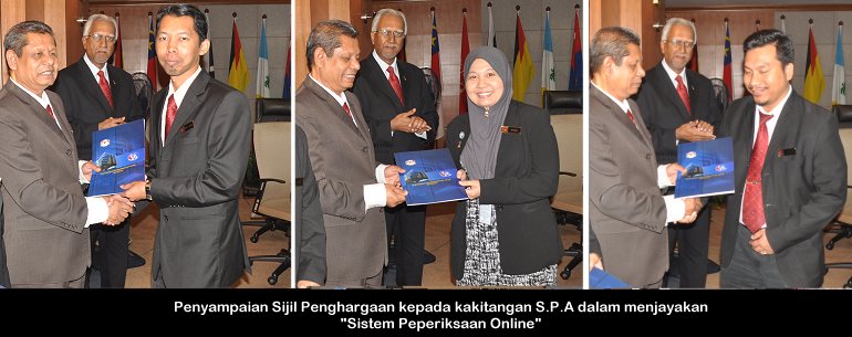 BERITA BERGAMBAR 12 Mei ---- "Sistem Peperiksaan Online" Penyampaian Sijil Penghargaan Kepada Kakitangan S.P.A