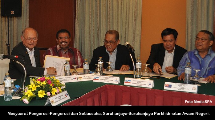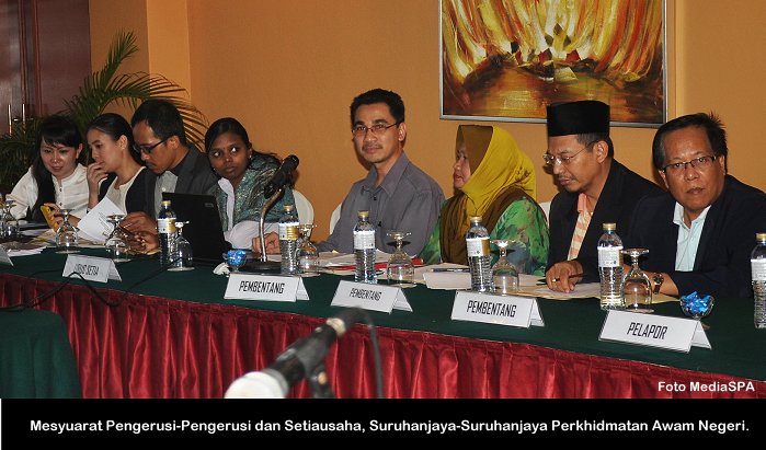 LANGKAWI, 18 Mei------ Tan Sri Mahmood Adam malam ini telah mempengerusikan Mesyuarat Pengerusi-Pengerusi dan Setiausaha-Setiausaha, Suruhanjaya-Suruhanjaya Perkhidmatan Awam Negeri. Mesyuarat yang bermula sebentar tadi turut di hadiri Pengerusi-Pengerusi serta Setiausaha-Setiausaha S.P.A negeri. Hadir sama Datuk Ramli Juhari dan pegawai-pegawai kanan S.P.A. Antara lain perkara yang bincangkan dalam mesyuarat kali ini ialah mengenai Rulling SPA dan Peperiksaan secara Online yang telah dijalankan oleh Suruhanjaya Perkhidmatan Awam. ------ MediaSPA