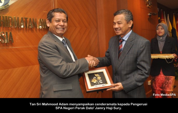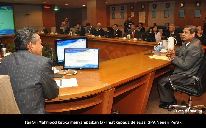 PUTRAJAYA, 29 Jan------ Ahli-Ahli Suruhanjaya Perkhidmatan Awam Negeri Perak mengadakan perjumpaan bersama Pengerusi S.P.A, Tan Sri Mahmood Adam di Purtajaya, semalam. Perjumpaan delegasi dari SPAN Perak diketuai oleh Pengerusinya Dato’ Jamry Haji Sury. Perjumpaan selama dua jam itu dimulakan dengan sesi taklimat yang disampaikan oleh Tan Sri Mahmood Adam mengenai competency based interview (CBI) sesi maklum balas dan penyampaian sijil, serta cenderamata. ------MediaSPA