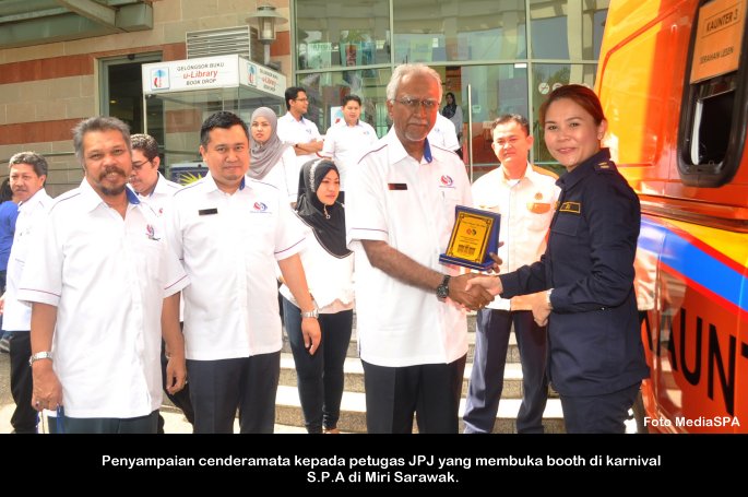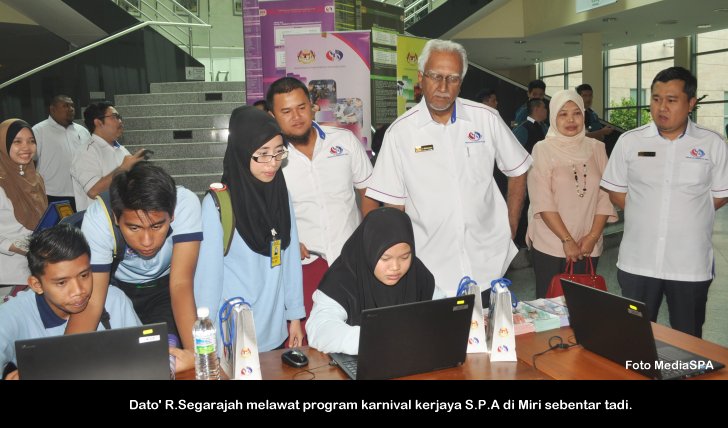 MIRI, 18 Mac ------ Suruhanjaya Perkhidmatan Awam Malaysia (S.P.A) hari ini telah mengadakan Karnival Kerjaya yang diadakan di Pustaka Miri, Sarawak. Timbalan Pengerusi S.P.A Dato’ R.Segarajah hadir dan menyampaikan cenderamata kepada petugas booth yang bertugas dan memberi penerangan kepada pengunjung yang hadir. Turut hadir Timbalan Setiausaha (Perkhidmatan) Salmah Idris. Kaunter permohonan jawatan dengan S.P.A secara online turut disediakan. Karnival yang bermula jam 9.00 pagi tadi akan berakhir 3.00 petang ini. ------MediaSPA