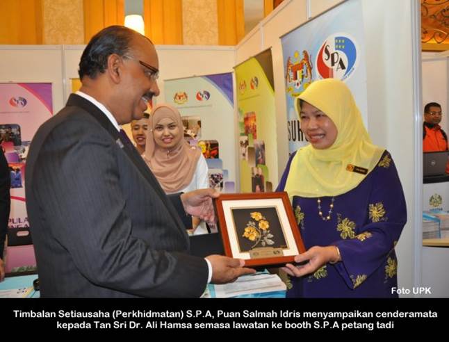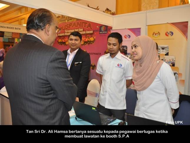 PUTRAJAYA, 26 Mac ------ Suruhanjaya Perkhidmatan Awam Malaysia (S.P.A) telah menyertai pameran kerjaya selama dua (2) hari yang bermula semalam bersempena dengan Mesyuarat Agong Perwakilan ke-33 PUSPANITA yang diadakan di Dewan Seri Endon, Presint 10 Putrajaya. Perasmian telah disempurnakan oleh Ketua Setiausaha Negara, Tan Sri Dr. Ali Hamsa. Turut hadir Yang Dipertua PUSPANITA, Puan Sri Datuk Rohani Rohani Abdullah. Pameran kerjaya yang berakhir hari ini turut disertai oleh pelbagai agensi kerajaan dan swasta. ------ MediaSPA
