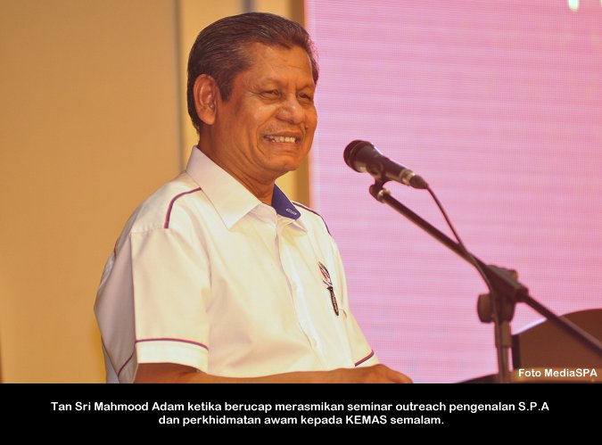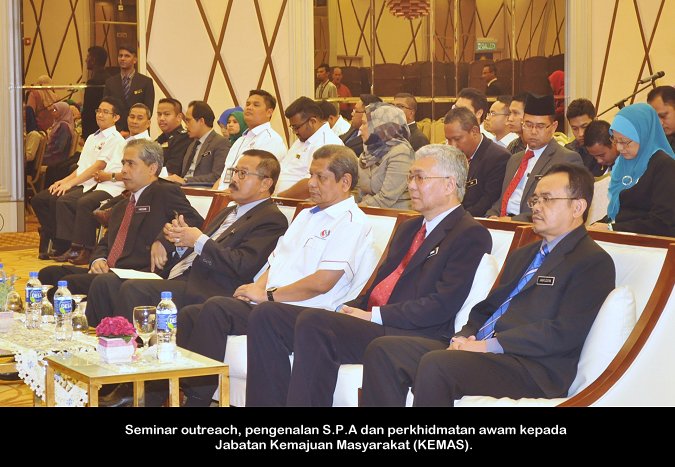 PUTRAJAYA, 8 April ------ Suruhanjaya Perkhidmatan Awam Malaysia (S.P.A) telah berjaya menyelesaikan masalah yang dihadapi oleh Jabatan Kemajuan Masyarakat (KEMAS) dengan melantik ke jawatan tetap pegawai-pegawai yang bertaraf kontrak. Ini termasuklah pegawai kontrak di Jabatan Hal Ehwal Khas (JASA) dan Jabatan Perpaduan. “Dengan beberapa kaedah penyelesaian dan siri perjumpaan yang melibatkan S.P.A, JPA dan Kementerian Kewangan, perkara ini dapat diselesaikan dan sebahagian pegawai-pegawai kontrak dapat dilantik ke jawatan tetap”. Pengerusi S.P.A Tan Sri Mahmood Adam berkata demikian semasa perjumpaan dengan pegawai-pegawai KEMAS di Putrajaya petang semalam. Hadir sama Ketua Pengarah KEMAS, Dato’ Hassan Mohd Amin. Menurut Tan Sri Mahmood lagi siri perbincangan dan perjumpaan yang bermula sejak Julai 2012, akan diteruskan dan beliau yakin masalah yang dihadapi akan dapat diselesaikan. ------MediaSPA