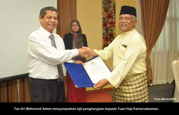 PUTRAJAYA, 26 April ------ Setiausaha Bahagian Pengurusan Maklumat (BPM) Tuan Haji Kamarudzzaman Hassan bersara wajib mulai 26 April 2015. Satu majlis ringkas sempena persaraannya telah diadakan pada Jumaat lepas. Majlis turut dihadiri Pengerusi S.P.A, Tan Sri Mahmood Adam, Timbalan Pengerusi, Dato’ R. Segarajah. Hadir sama pegawai-pegawai kanan serta warga Bahagian Pengurusaan Maklumat. Dalam ucapan ringkas Tuan Haji Kamarudzzaman mengucapkan terima kasih kepada warga S.P.A kerana memberi kerjasama kepada beliau dalam menjalankan tugas-tugas selama berada di S.P.A. ------ MediaSPA