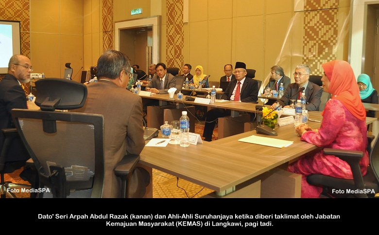 LANGKAWI, 9 Dis ------ Jabatan Kemajuan Masyarakat (KEMAS) hari ini telah menyampaikan taklimat kepada Suruhanjaya Perkhidmatan Awam Malaysia (S.P.A) yang diadakan di Langkawi International Convention Centre (LCC). Taklimat yang disampaikan oleh Ketua Pengarah KEMAS, Dato’ Hassan Mohd Amin turut dihadiri Pengerusi S.P.A, Dato’ Seri Arpah Abdul Razak, Ahli-Ahli Suruhanjaya dan pegawai-pegawai kanan S.P.A. ------ MediaSPA