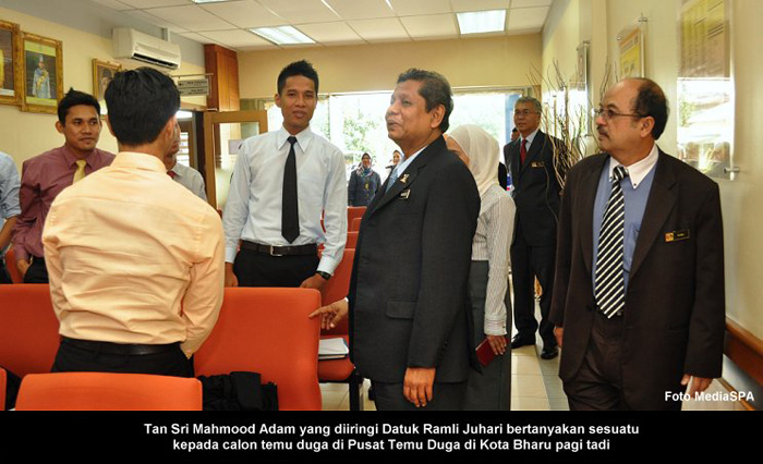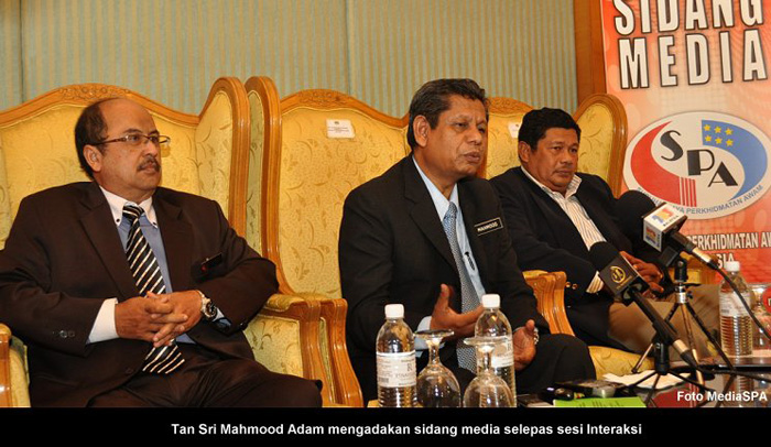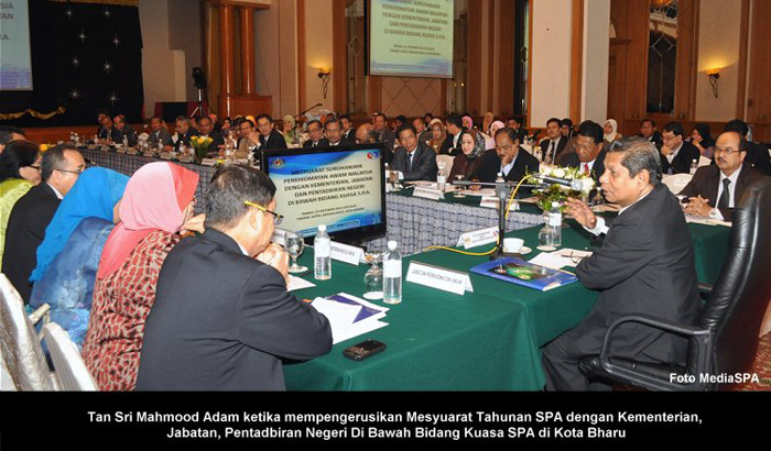 KOTA BHARU 24 Oktober----- Suruhanjaya Perkhidmatan Awam Malaysia (SPA) telah mengadakan Mesyuarat Tahunan dengan Kementerian, Jabatan, Pentadbiran Negeri di Bawah Bidang Kuasa SPA yang diadakan di Hotel Renaissance Kota Bharu, Kelantan. Mesyuarat selama dua (2) hari yang bermula semalam telah dihadiri oleh Pengerusi SPA, YBhg. Tan Sri Mahmood Adam, Setiausaha SPA, YBhg. Datuk Ramli Juhari dan pegawai-pegawai kanan SPA. YBhg. Pengerusi SPA juga telah hadir dalam satu sesi temu bual bersama RTM Kelantan. Sementara itu, pada malam tadi Pengerusi SPA telah mengadakan Mesyuarat Bersama Pengerusi dan Setiausaha Suruhanjaya-Suruhanjaya Perkhidmatan Awam Malaysia dan Pentadbiran Negeri di Bawah Bidang Kuasa SPA. Pada hari terakhir hari ini pula telah diadakan Sesi Interaksi bersama Ketua-ketua Jabatan Persekutuan, Ahli-Ahli Majlis NGO Kelantan, Badan-Badan Berkanun dan Badan-Badan Bukan Kerajaan bagi Zon Timur. Sejurus selepas berakhirnya program Sesi Interaksi tersebut, Sidang Media telah diadakan di tempat yang sama. YBhg. Tan Sri Mahmood Adam juga turut membuat lawatan ke Pusat Temu Duga SPA Kota Bharu, Kelantan. ----- MediaSPA