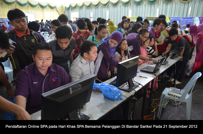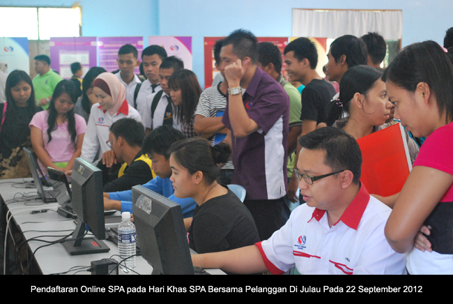 KUCHING 24 September----- Dalam menggalas usaha merakyatkan SPA, Urusetia Cawangan Sarawak telah mengadakan Hari Khas SPA Bersama Pelanggan di Bahagian Sarikei iaitu di Bandar Sarikei dan Daerah Julau masing-masing pada 21 September 2012 dan 22 September 2012. Selain itu, pada 22 September 2012 itu juga, pejabat ini turut menyertai Karnival Kerjaya anjuran Jabatan Ketua Menteri Sarawak yang berlangsung di Daerah Kanowit, Sibu.