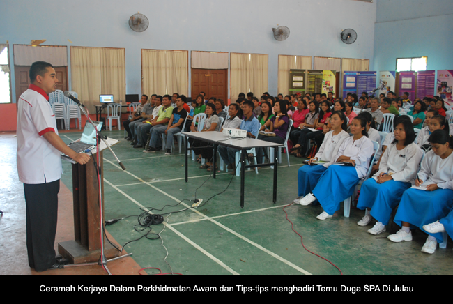 Antara aktiviti-aktiviti yang berlangsung sepanjang program-program tersebut adalah Ceramah Kerjaya dalam Perkhidmatan Awam dan Tips-Tips Temu Duga, Pendaftaran Online SPA, Kaunter Khidmat Nasihat Urusan SPA, dan pameran-pameran dari SPA dan pelbagai jabatan persekutuan. Ceramah Kerjaya telah disampaikan oleh Encik Asrul bin Zakaria, Penolong Setiausaha (Perkhidmatan) Urus Setia Cawangan Sarawak.