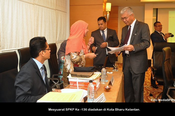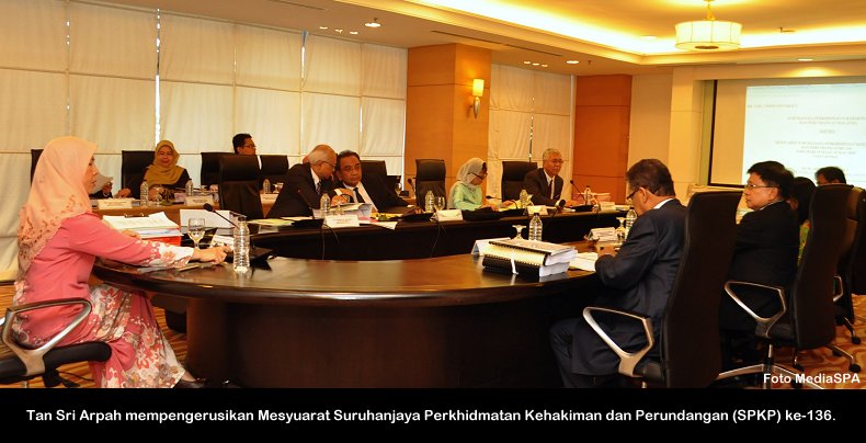 KOTA BHARU, 16 Mac ----- Suruhanjaya Perkhidmatan Kehakiman dan Perundangan (SPKP) telah mengadakan mesyuaratnya yang ke-136 di Kota Bharu Kelantan. Mesyuarat yang dipengerusikan oleh Pengerusi SPKP, YBhg. Tan Sri Arpah Abdul Razak dihadiri Ahli-Ahli SPKP iaitu Peguam Negara, YAA Hakim Besar Malaya, YAA Hakim Besar Sabah dan Sarawak, YA Hakim Mahkamah Persekutuan, YA Hakim Mahkamah Rayuan, YA Hakim Mahkamah Tinggi Kuala Lumpur dan Setiausaha SPKP, YBhg. Dato' Zainal Abidin Ahmad. Turut hadir Peguam Cara Negara II, Ketua Pendaftar Mahkamah Persekutuan dan pegawai-pegawai kanan Urus Setia SPKP. Mesyuarat telah menimbangkan kertas-kertas bagi urusan pelantikan, penentuan gaji permulaan, kenaikan pangkat, pemangkuan, surcaj dan isu-isu dasar perkhidmatan berkaitan Pegawai Undang-Undang dalam Perkhidmatan Kehakiman dan Perundangan. ----- MediaSPA