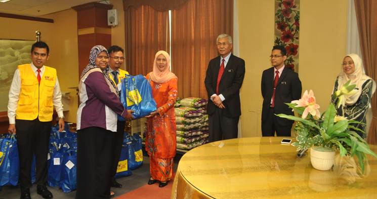 PUTRAJAYA, 11 Jun ----- Pengerusi SPA merangkap Penaung SPA Volunteer (SPAVOL) YBhg. Tan Sri Arpah Abdul Razak telah menyampaikan sumbangan SPAVOL kepada Kakitangan SPA Gred 11 dan ke bawah hari ini. Seramai 40 kakitangan SPA telah menerima sumbangan berupa barangan keperluan harian seperti beras, minyak masak, milo, tepung, gula, sos, cordial, ketupat segera, susu dan serbuk teh sebagai persiapan menyambut Hari Raya Aidilfitri. Turut hadir Setiausaha SPA merangkap Penasihat SPAVOL YBhg. Dato' Zainal Abidin Ahmad, Timbalan Setiausaha (Perkhidmatan) Encik Ikhbal Hanam Mukras, Timbalan Setiausaha (Pengambilan) Puan Ruziah Haji Shafei, Presiden SPAVOL YM Raja Adnan Raja Ibrahim, Timbalan Presiden SPAVOL Ismawira Amin Ismail serta AJK SPAVOL. Terdahulu Tan Sri Arpah mengucapkan terima kasih kepada SPAVOL atas usaha melaksanakan pelbagai program di seluruh negara termasuk ke Kemboja bagi membantu mereka yang memerlukan. Beliau menyatakan bahawa akan sentiasa menyokong penuh usaha SPAVOL selama ini dan seterusnya beliau mengucapkan selamat Hari Raya Aidil Fitri kepada seluruh warga SPA dan mendoakan agar semua selamat pulang ke kampung halaman dan selamat kembali bertugas. ----- MediaSPA