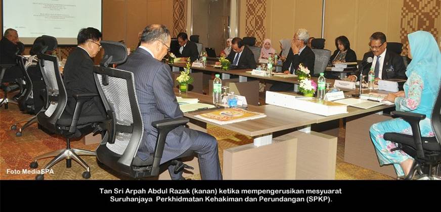 LANGKAWI 3 Mac ----- Suruhanjaya Perkhidmatan Kehakiman dan Perundangan (SPKP) telah mengadakan Mesyuaratnya yang ke-132 di Langkawi International Convention Centre (LICC), semalam. Mesyuarat telah dipengerusikan oleh Pengerusi SPKP YBhg. Tan Sri Arpah Abdul Razak. Turut hadir Timbalan Pengerusi SPA, Ahli-Ahli SPKP iaitu YBhg. Peguam Negara, Yang Amat Arif Presiden Mahkamah Rayuan Malaysia, Yang Amat Arif Hakim Besar Malaya, Yang Amat Arif Hakim Besar Sabah Dan Sarawak, Yang Arif Hakim Mahkamah Persekutuan, Yang Arif Hakim Mahkamah Tinggi dan Peguam Cara Negara. Turut hadir mesyuarat berkenaan Setiausaha SPKP, YBhg. Dato' Zainal Abidin Ahmad, Timbalan Ketua Pendaftar dan pegawai-pegawai kanan Urus Setia SPKP. Mesyuarat telah menimbangkan kertas-kertas bagi urusan pelantikan, kenaikan pangkat, tatatertib dan isu-isu dasar perkhidmatan berkaitan Pegawai Undang-Undang dalam Perkhidmatan Kehakiman dan Perundangan. ----- MediaSPA