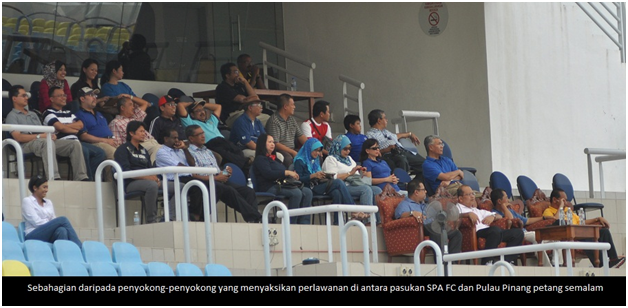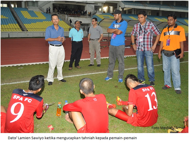 PULAU PINANG, 6 Mei----- SPA FC membawa pulang tiga (3) mata penuh setelah menewaskan pasukan Pulau Pinang 1-0 dalam perlawanan bola sepak Liga FAM 2012, yang berlangsung di Stadium Negeri Batu Kawan, Pulau Pinang petang tadi. Jaringan SPA FC diperoleh melalui Mohd Asrulnazwan Ibrahim pada minit ke 35. Presiden Bola Sepak SPA FC YBhg. Dato' Lamien Sawiyo yang turut hadir menyaksikan perlawanan, mengucapkan tahniah kepada pemain-pemain. Hadir menyaksikan perlawanan, Setiausaha Kerajaan Negeri Pulau Pinang, Y.B. Dato' Farizan Darus. Kemenangan pertama pasukan SPA FC yang masuk ke pusingan kedua Liga FAM 2012 nyata memberi semangat kepada pemain-pemain dan ini adalah perlawanan kedua SPA FC setelah menewaskan pasukan sama pada minggu lepas. -----MediaSPA