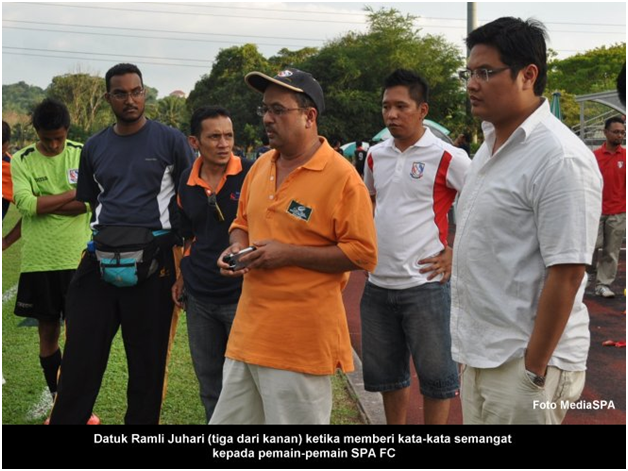 BANGI, 22 April ------  “Kita tidak perlu kecewa”, itulah kata-kata semangat, Timbalan Presiden SPA FC, YBhg. Datuk Ramli Juhari kepada pasukan SPA FC yang tewas kepada pasukan UiTM FC 3 – 1 dalam saingan Liga FAM 2012 yang berlangsung di Stadium Mini Petronas Bangi, petang tadi. “Pasukan lawan pasti akan berusaha menewaskan pasukan kita sebab mereka tahu kita pasukan yang bagus, sebab itu mereka berusaha keras” ujar beliau ketika berucap di hadapan pemain-pemain SPA FC setelah tamat perlawanan. Jaringan SPA FC diperolehi melalui tandukan oleh Zulkifli Affendi pada minit ke-62. ”Kita ada lagi 9 perlawanan selepas ini, dan ada masa lagi, tidak perlu kecewa”. Pasukan SPA FC yang telah bermain 7 kali, menang 5 perlawanan, sekali seri dan tewas satu perlawanan kepada UiTM petang tadi. Bagaimana pun SPA FC masih berada di tangga teratas Liga. ------ MediaSPA
