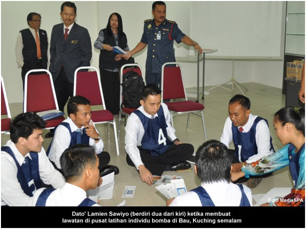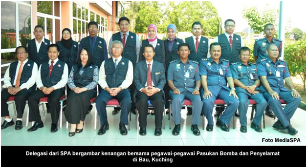 BAU, KUCHING, 17 Mac------ Setiausaha SPA, YBhg. Dato’ Lamien Sawiyo, telah mengadakan lawatan rasmi ke Pusat Penilaian Individu Bomba bagi jawatan Penguasa Bomba di Akademi Bomba dan Penyelamat Malaysia di Bau, Sarawak, semalam. Hadir sama Setiausaha Bahagian Pengambilan, Encik Zainal Abidin Ahmad, Setiausaha Bahagian Peperiksaan, Puan Faidzah Arshad dan Setiausaha Bahagian Urus Setia SPA Cawangan Sarawak, Encik Shaiful Sungkih Abdullah. Satu taklimat mengenai aktiviti yang dijalankan di pusat penilaian tersebut telah disampaikan oleh Timbalan Pengarah Negeri Pahang, Jabatan Bomba dan Penyelamat Malaysia, Tuan Nazali Mahmud. ------MediaSPA